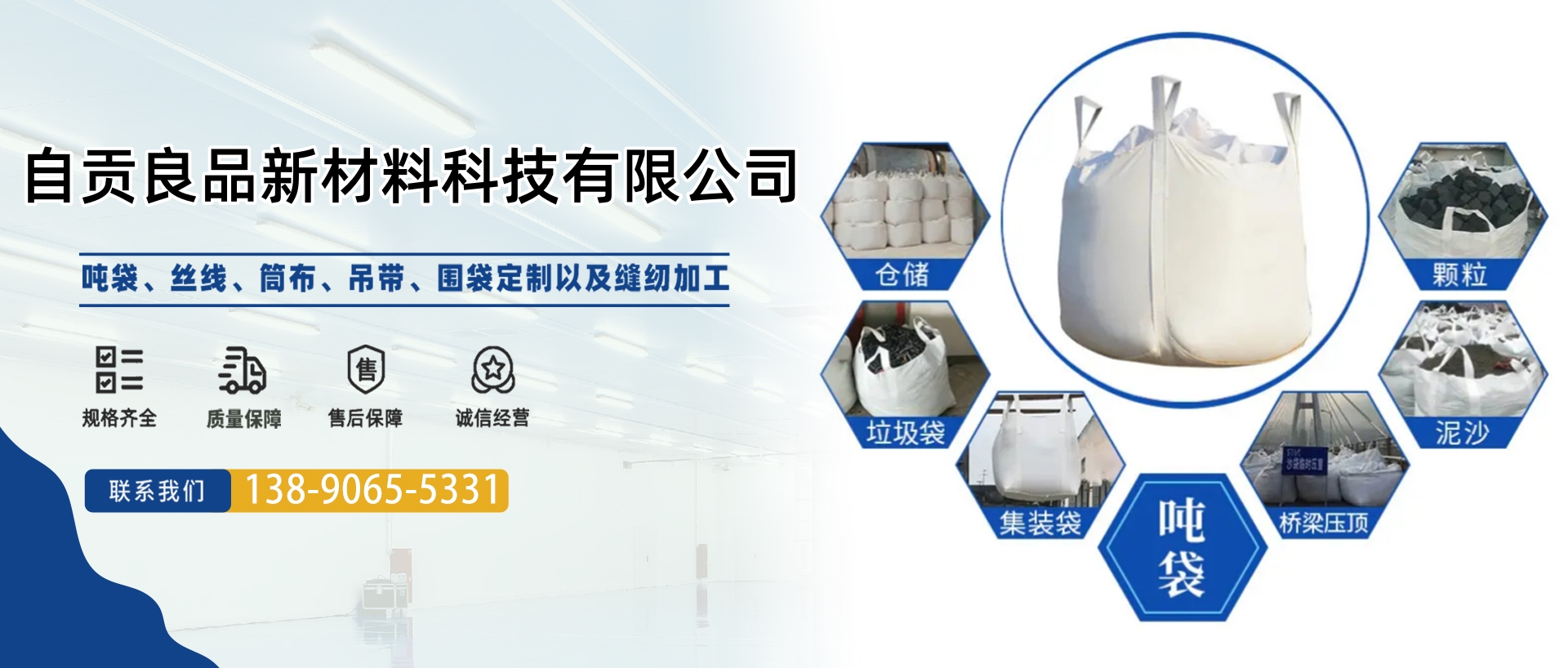 公司簡介 自貢良品新材料科技有限公司位于自貢市貢井區航空產業(yè)園B4-01-5地塊。成立于2020年4月,占地面積18余畝,生產車間面積約6000平米,目前一線員工百余人。我們專注于集裝袋的研發(fā)、設計、生產。產品包括圓形集裝袋、方形集裝袋、拉筋集裝袋、托盤袋、敞口集裝袋等各種定制集裝袋。公司秉持著誠信、創(chuàng)新、分享、拓展的價值觀,為客戶提供系統的包裝解決方案與服務。 業(yè)務領域 作為集裝袋行...